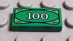 | 2 | 3069bpx7 | Green | Tile 1 x 2 with Money Pattern | ||